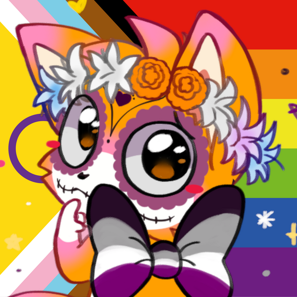 Harucchi (Bloss with Asexual ribbon & Panromantic tail flag, Bloss with the Asexual knife and Pansexual scarf)
